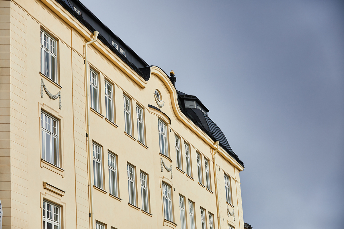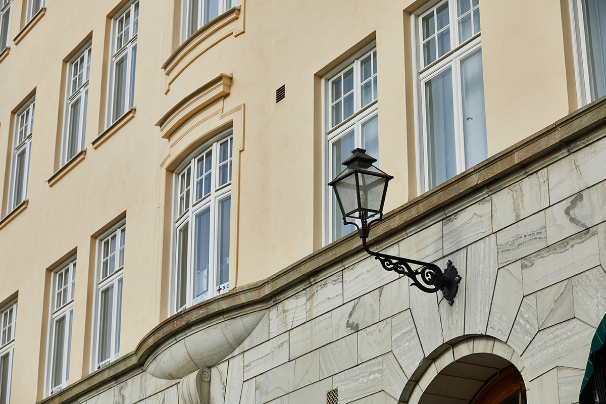 Beskrivning: Hel omputsning av gata och gårdsfasader med kalkbruk. Byggnaden är Q-märkt samt rödmarkerad enligt Södertäljes kommuns kulturmiljöprogram.