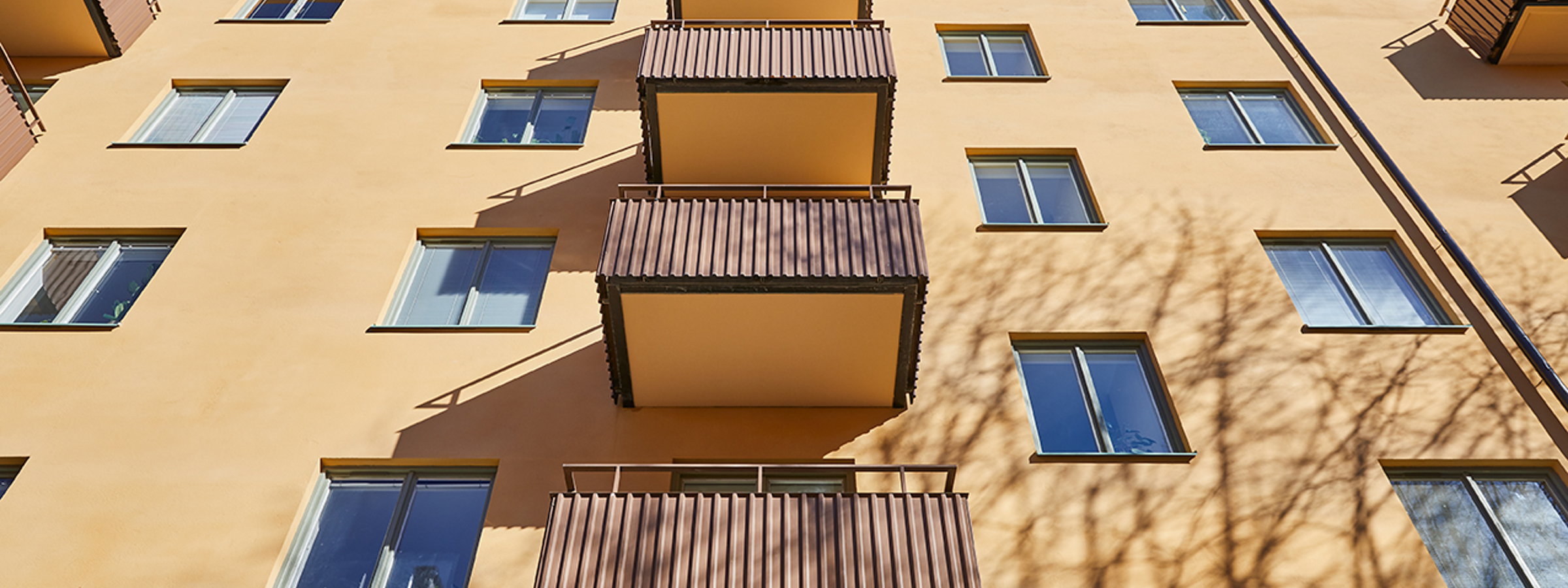 I samband med en fasadrenovering är det alltid bra att se över hela fastighetens skick. Vi arbetar med totalentreprenad, vilket innebär att vi ser till hela fastighetens yttre vilket inbegriper även fönster, tak och balkong.